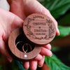Minimaliste et douce, cette boîte alliance au design rond est une vraie bulle de poésie. Fabriquée en bois et personnalisée selon vos envies, elle évoque l’harmonie, l’amour et l’éternité. Idéale pour les couples à la recherche d’un écrin moderne, naturel et unique.