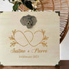 Nos produits sont fabriqués en France, dans notre atelier, avec des matériaux de bonne qualité. L'urne mariage sera composée d’une face en bois gravée de vos prénoms ou de vos initiales et de votre date de mariage.