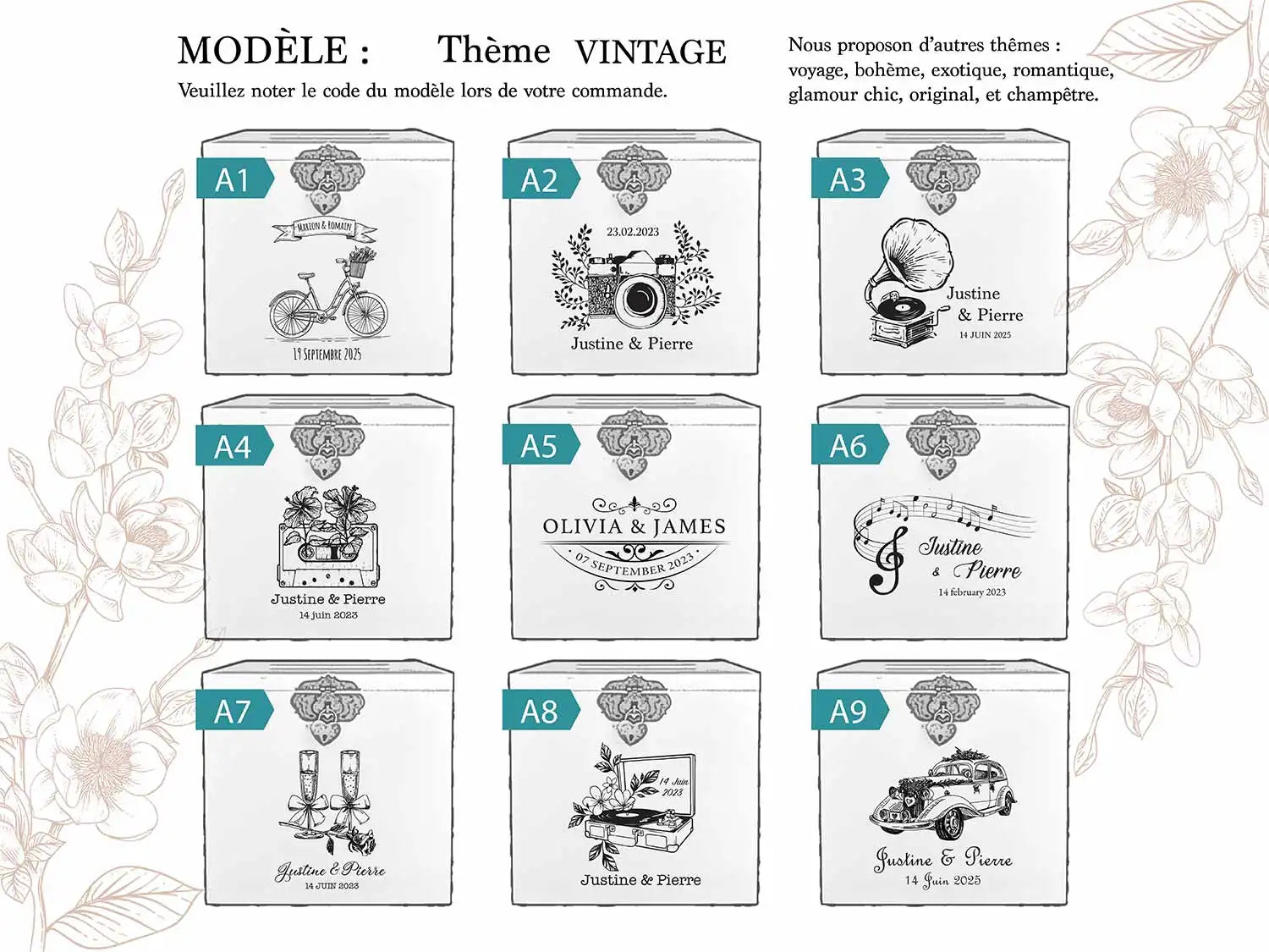 Sélectionnez la couleur et le modèle correspondant à la photo avec 9 motifs au choix.