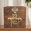 Découvrez une urne en bois brûlé avec gravure de motifs animaliers tropicaux, parfaite pour un mariage aux accents exotiques et naturels.