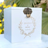 Symbole de victoire, d’honneur et d’amour éternel, la couronne de laurier trouve naturellement sa place sur cette urne pour mariage blanche, pensée pour sublimer une décoration de mariage au style champêtre. Sa gravure fine au laser contraste délicatement avec la peinture blanche satinée, créant un visuel sobre, élégant et tout en finesse.