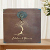 Optez pour une urne de mariage en bois de teinte noyer, personnalisée et au design bohème, qui incarne l’esprit de liberté et d’originalité.