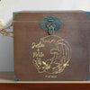 Urne mariage en bois teinte noyer, design exotique et onirique, qui évoque des voyages lointains et une atmosphère chaleureuse et colorée.
