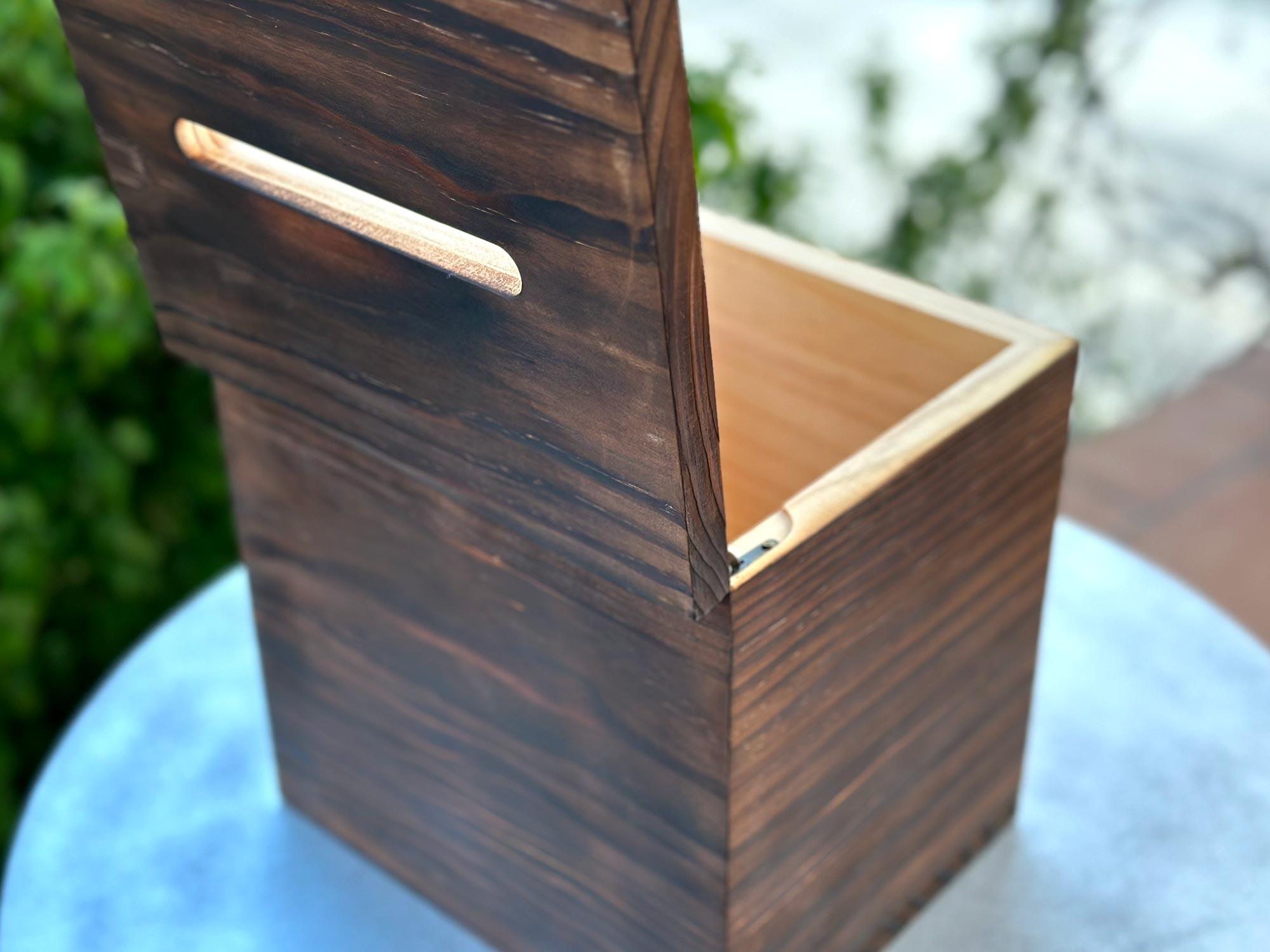 - Urne en bois brûlé : bois massif brûlé au flamme