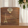 Offrez un clin d’œil romantique à la plus belle ville du monde avec cette urne de mariage sur le thème Voyage, gravée de l’inscription Destination Paris. Réalisée en bois brûlé, chaque pièce dévoile des nuances profondes et naturelles grâce à une finition artisanale unique. Ce modèle associe l’élégance intemporelle de la capitale de l’amour à l’authenticité des matières brutes, parfait pour un mariage placé sous le signe de l’évasion.