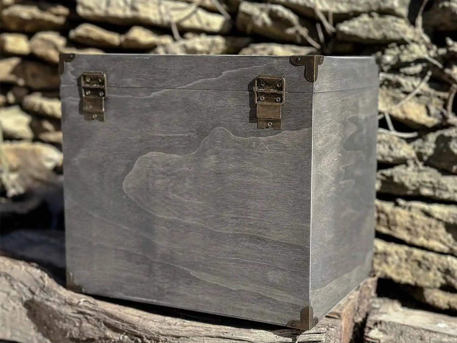 Chaque pièce est façonnée à la main dans notre atelier en France, à partir de bois travaillé pour lui donner une texture rustique et une teinte gris douce et minérale. Cette urne fait partie de nos urnes de cérémonie faites main pensées pour accueillir avec grâce les enveloppes et les petits mots du jour J.